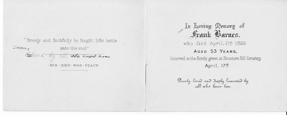 A memorial card recording the death of Frank Barnes. (Ourgenes Archive)